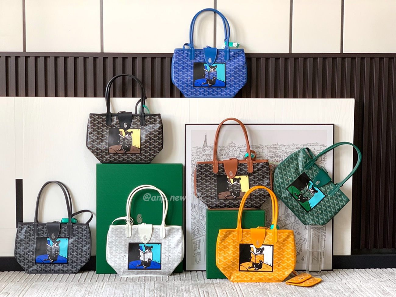 Goyard Anjou Mini Tote Bag BlackNatural Black Grey Navy White Green Yellow