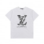 Louis Vuitton Classic Alphabet Digital Direct Spray Round Neck Short Sleeve T-shirt