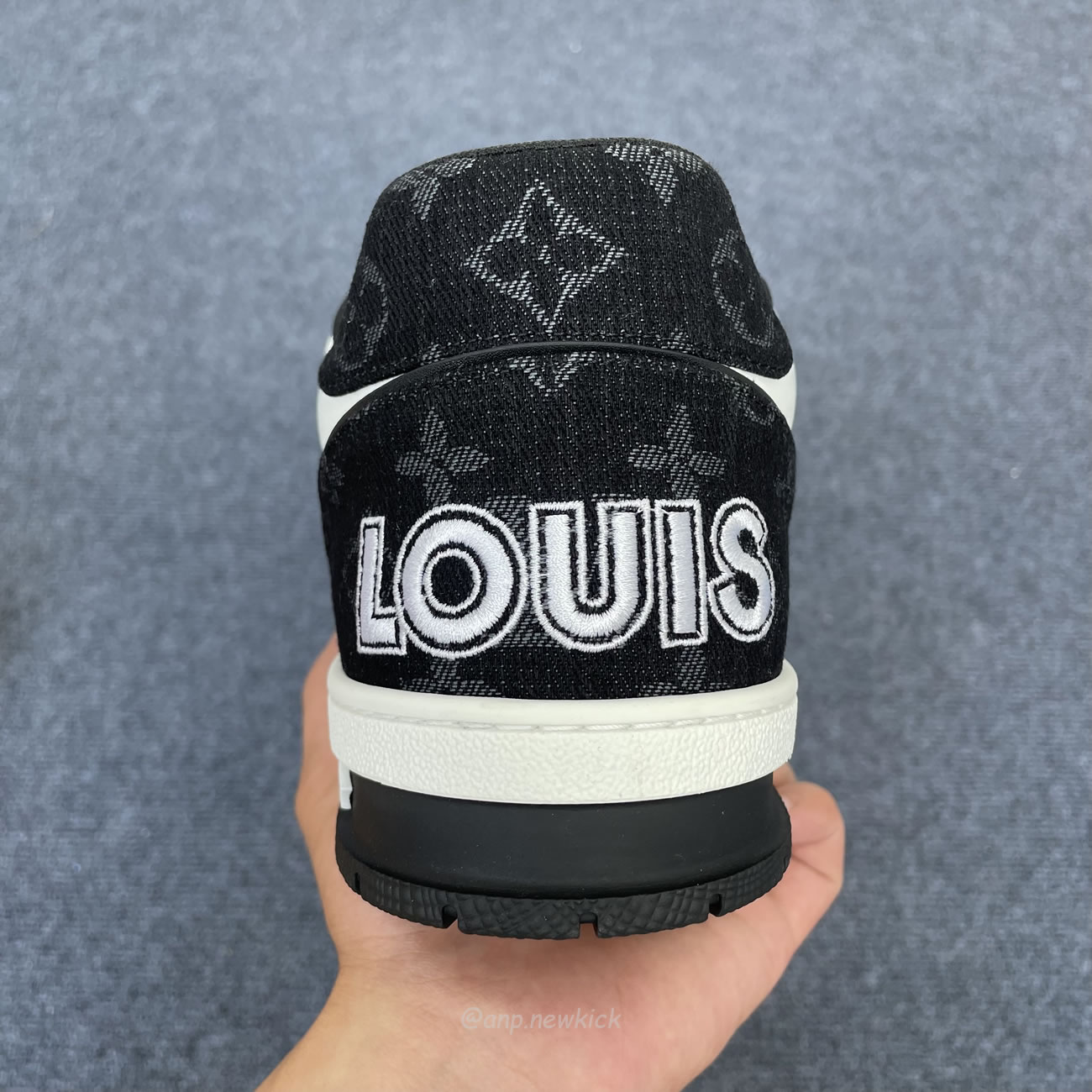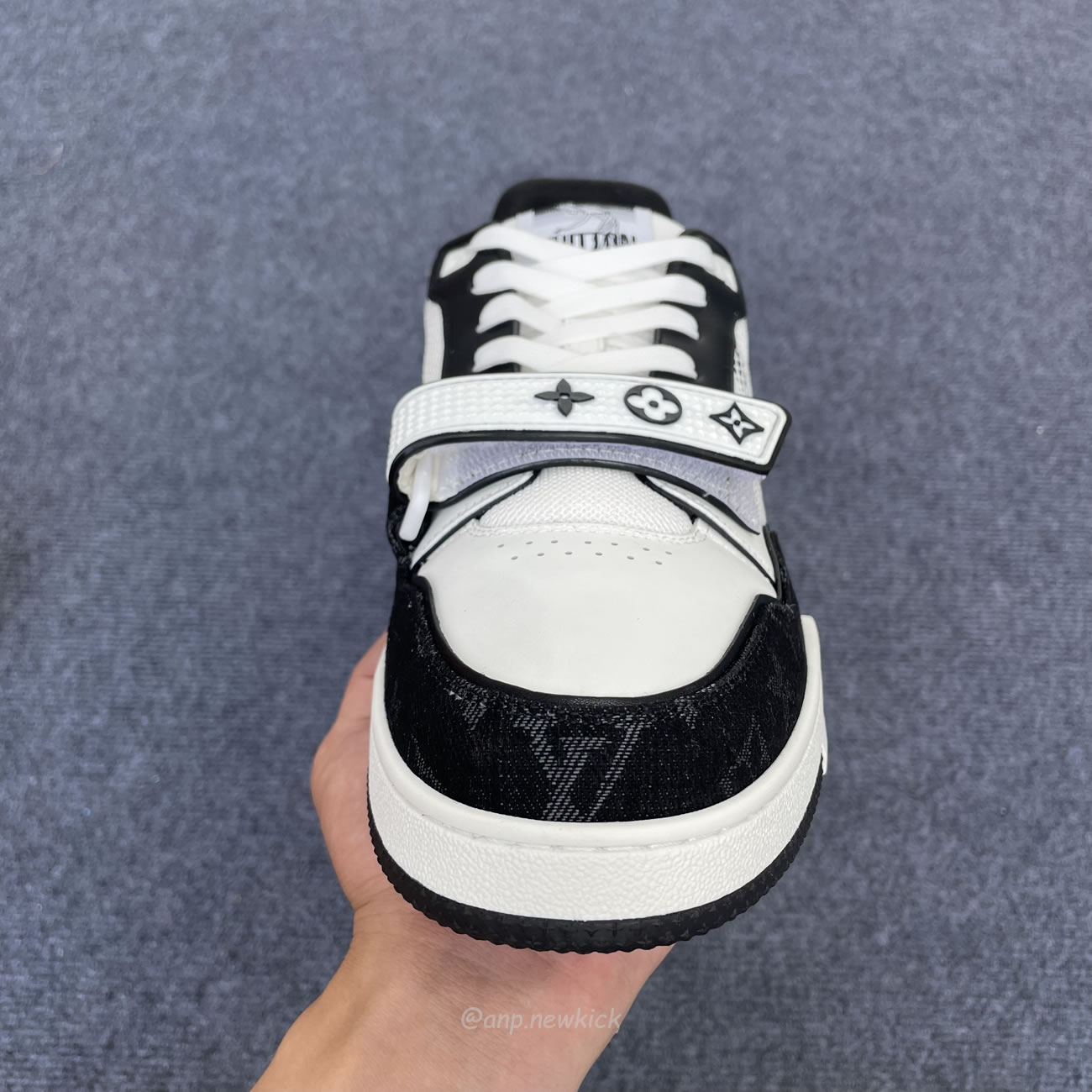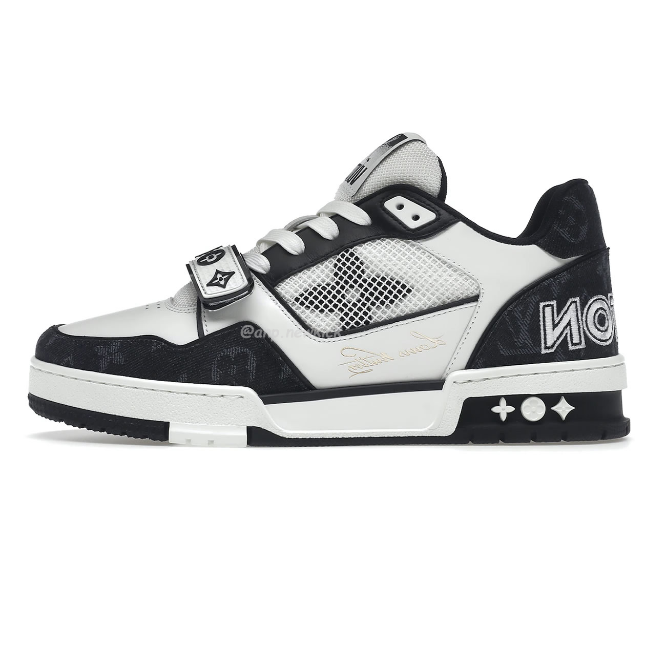 Louis Vuitton LV Trainer Velcro Strap Monogram Denim Black White 1A9ZAU
