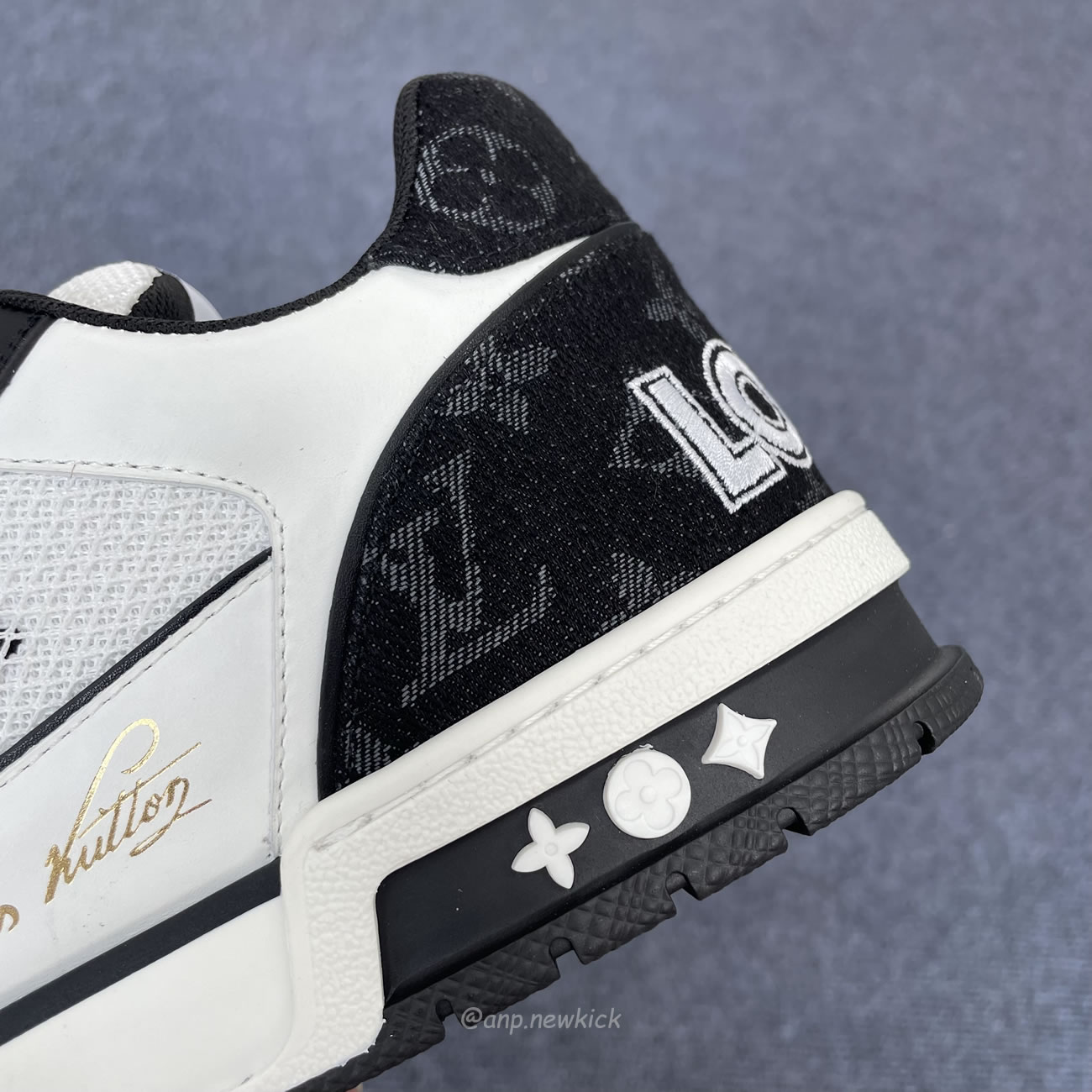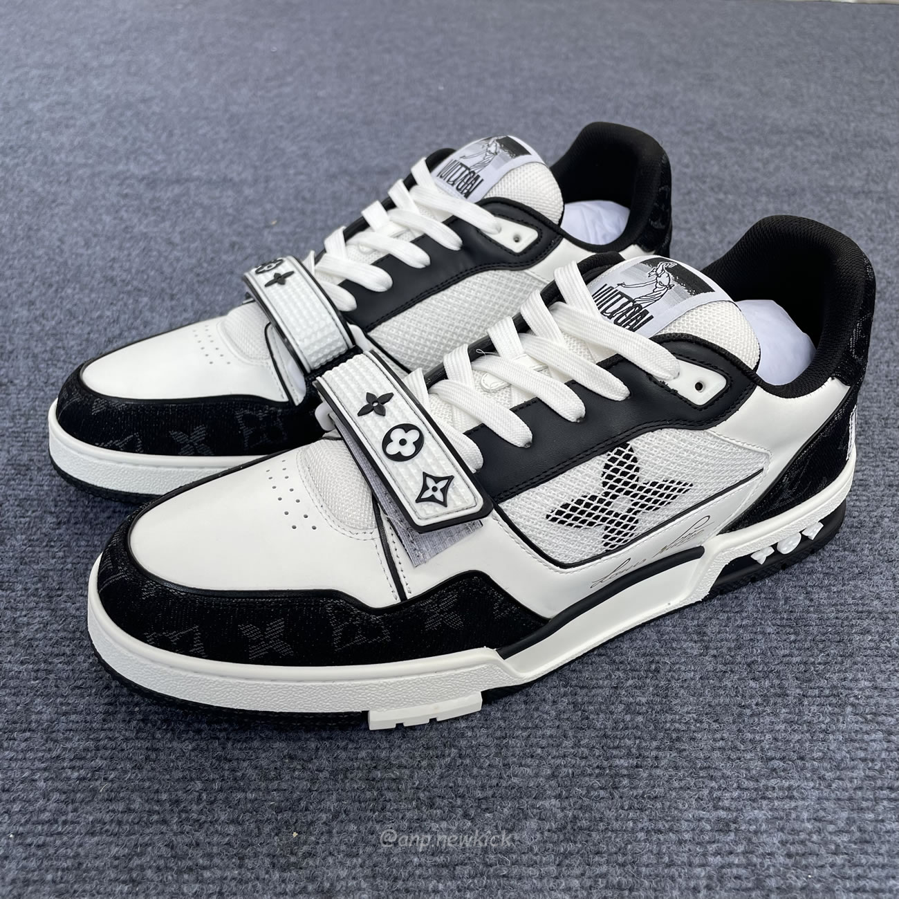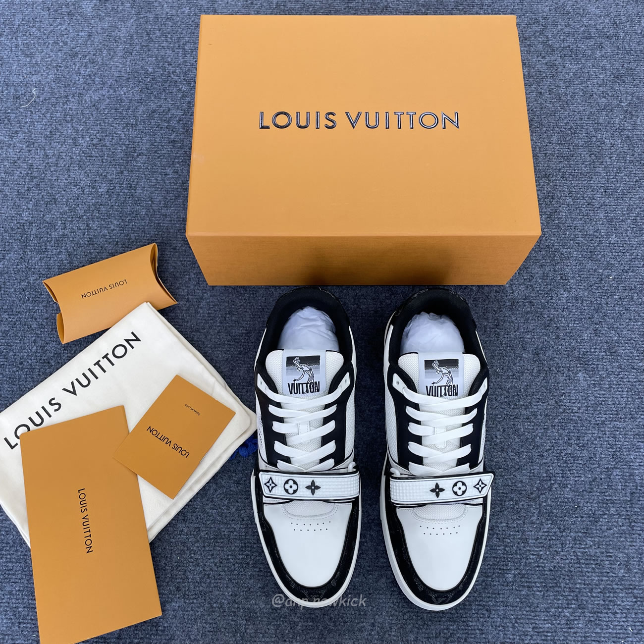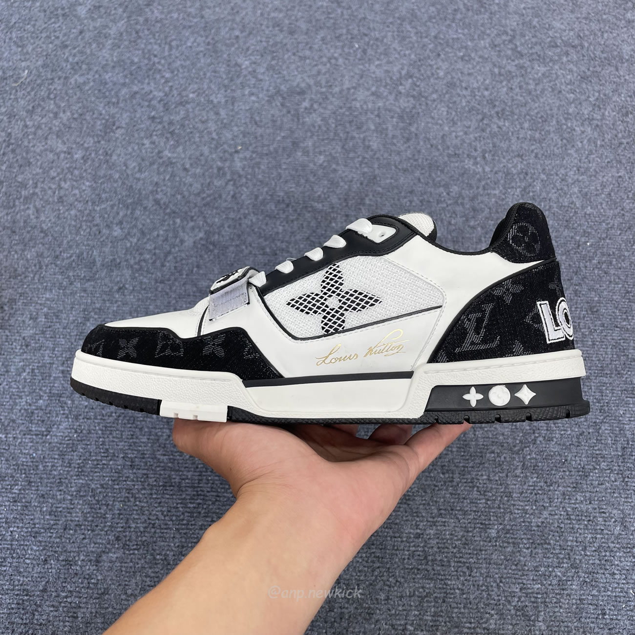 Louis Vuitton LV Trainer Velcro Strap Monogram Denim Black White 1A9ZAU